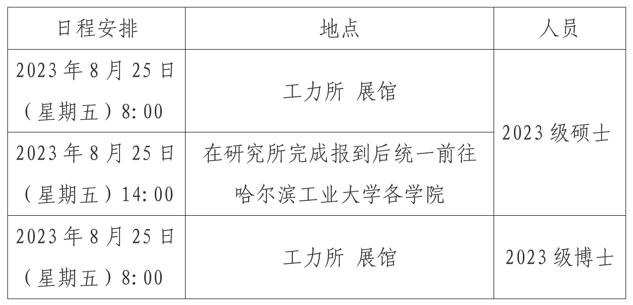為更好地安排報到各項事宜,請各位同學提前將行程相關信息(姓名、車次、航班、到哈時間、手機號碼等)發送至微信:IEM2023。研究所不設接站點,請自行前往所內報到,途中注意個人人身、財產安全。