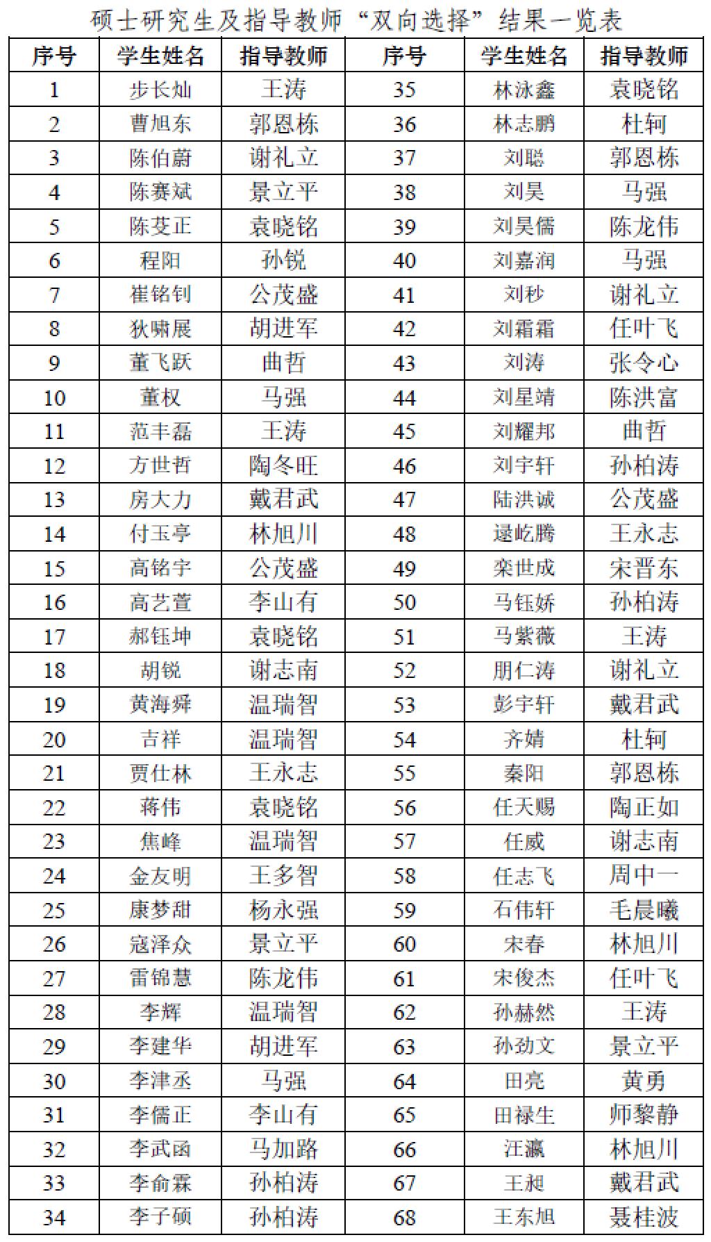 關(guān)于公布2022級碩士研究生及指導(dǎo)教師雙選結(jié)果的通知