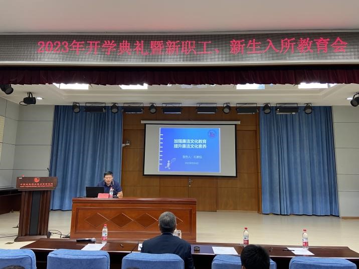 發布時間: 2023-09-05 點擊數量:104359月4日下午,我所舉行2023年新生開學典禮暨新職工、新生入所教育會,隆重歡迎150名新生入學和全體新同事入職。黨委書記、所長李山有,黨委副書記張孟平,紀委書記孔繁鈺,副所長張令心出席開學典禮,張令心主持典禮。