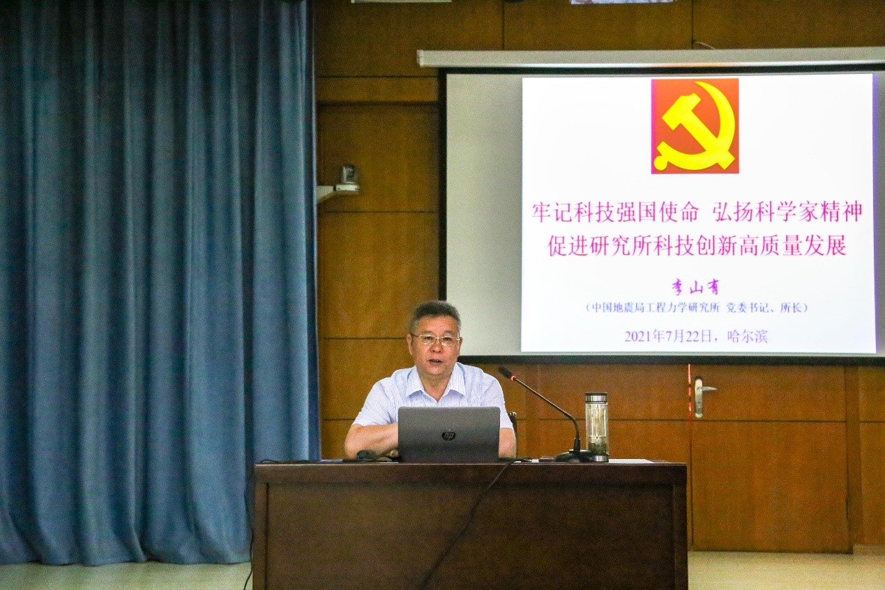 發布時間: 2021-07-27 點擊數量:50837月22日,工力所舉行黨史學習教育專題黨課報告會。工力所黨委書記、所長李山有同志以“牢記科技強國使命 弘揚科學家精神 促進研究所科技創新高質量發展”為主題向全所干部職工和學生黨員講授黨史學習教育專題黨課。