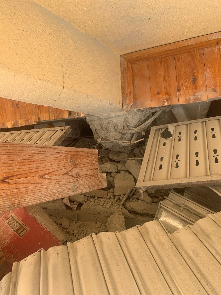 圖5 磨西鎮(zhèn)某商鋪底層底層整體垮塌(底框結(jié)構(gòu))
