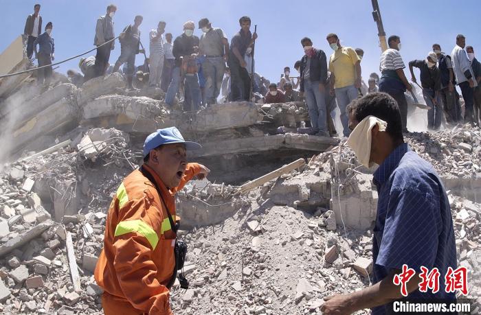 2003年,孫柏濤作為中國國際救援隊(duì)專家在阿爾及利亞地震現(xiàn)場指導(dǎo)救援。應(yīng)急管理部供圖