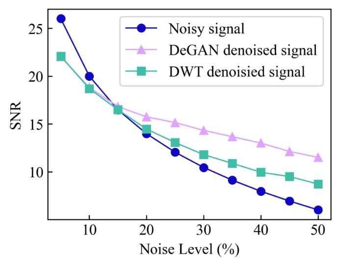 圖2 DeGAN對不同強(qiáng)度噪聲的去噪效果對比