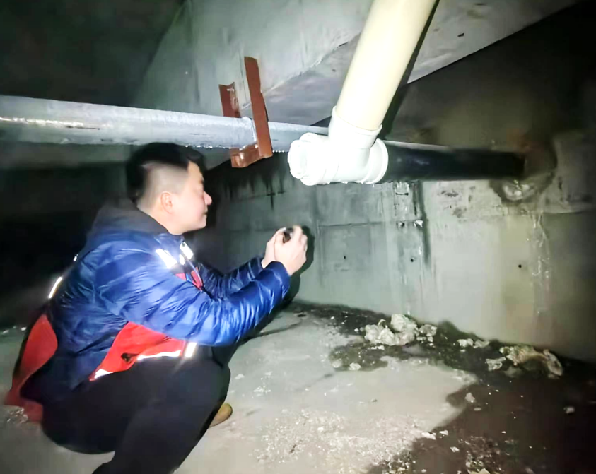 圖3 朱柏潔考察某隔震結(jié)構(gòu)隔震層水管連接情況