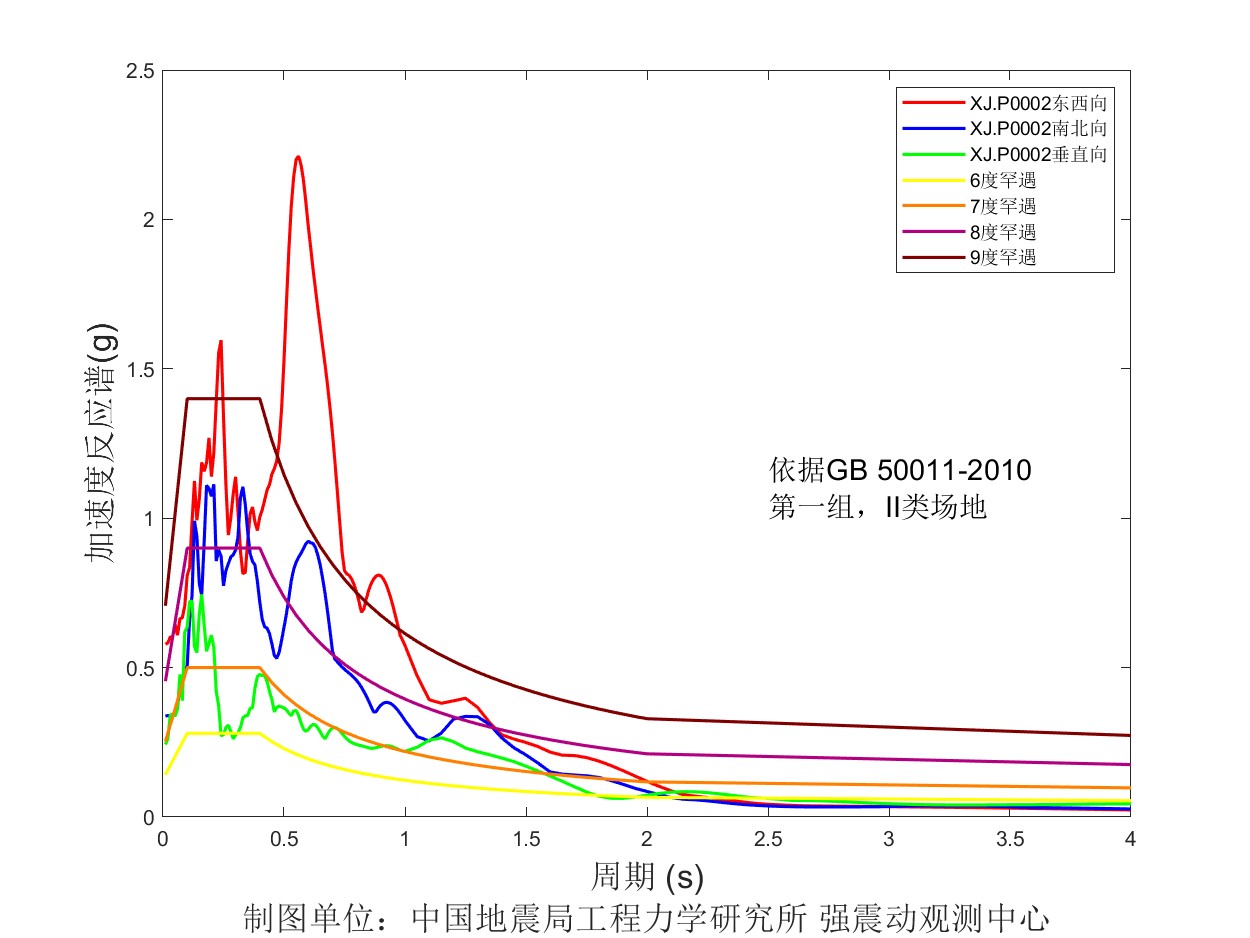 圖5 XJ. P0002臺(tái)加速度反應(yīng)譜圖
