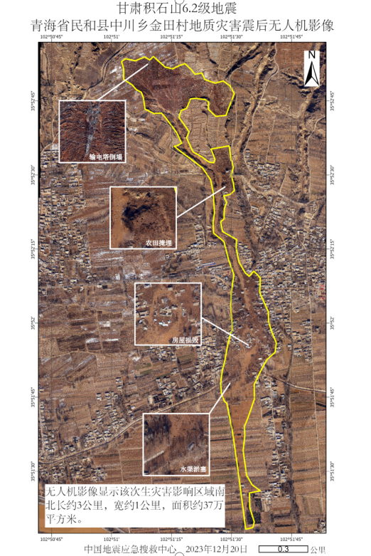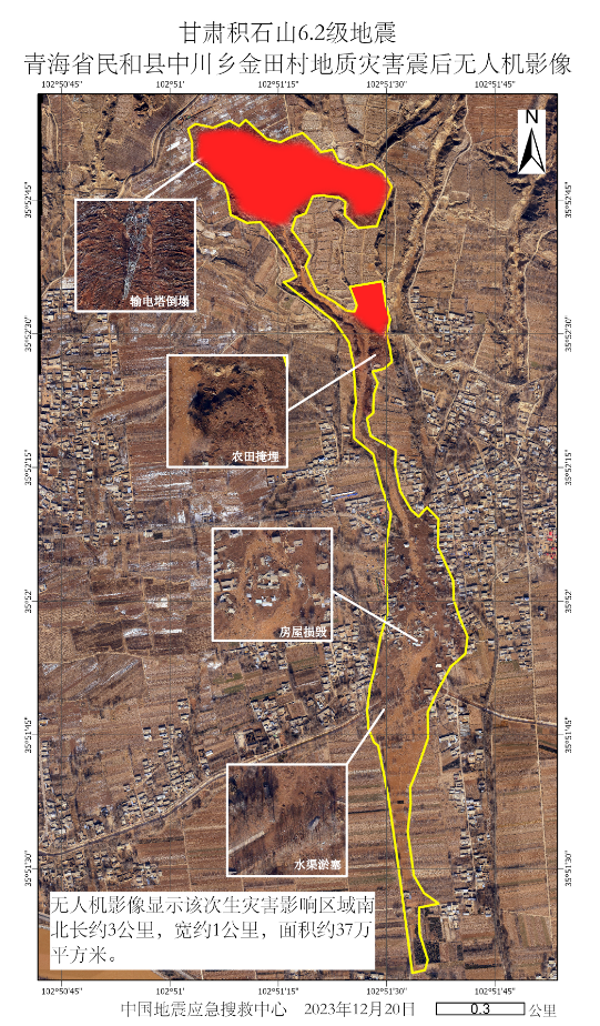 發布時間: 2023-12-25 點擊數量:55482023年12月18日23時59分,甘肅省臨夏積石山縣發生6.2級地震。此次地震已造成部分房屋損毀甚至倒塌,并由此造成人員傷亡。除房屋倒塌外,此次地震在青海省海東市民和縣中川鄉金田村和草灘村引發了被稱之為“砂涌”的特殊現象,區域內部分房屋被厚達數米的流滑土壤掩埋(圖1)。