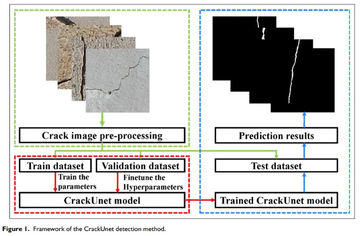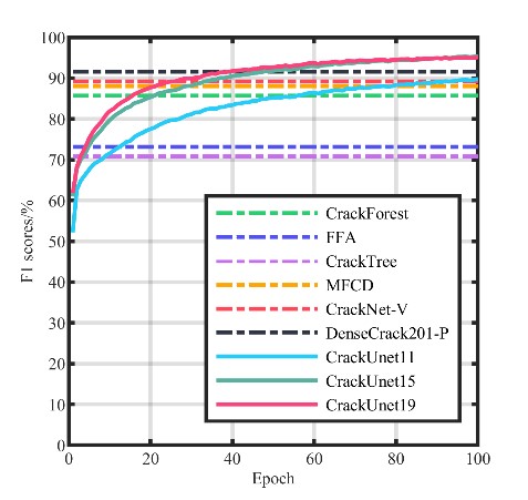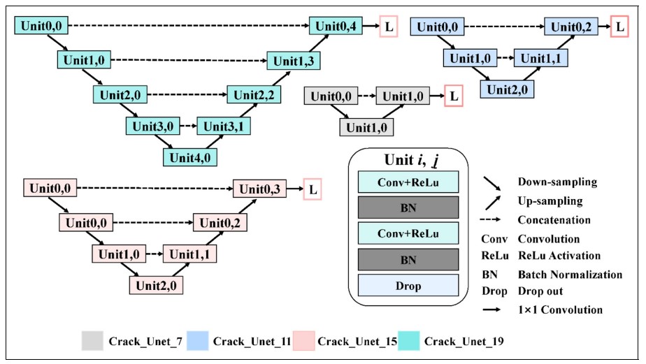 該成果在結構健康監(jiān)測領域的國際權威期刊《Structural Health Monitoring-An International Journal》發(fā)表。(Zhang Lingxin, Shen Junkai*, Zhu Baijie. A research on an improved Unet-based concrete crack detection algorithm [J]. Structural Health Monitoring, 2021, 20(4): 1864-1879. DOI: https://doi.org/10.1177/1475921720940068) (IF: 5.929, *通訊作者)