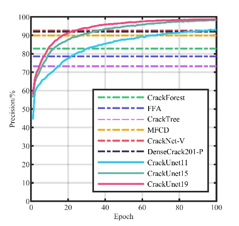 在混凝土結構的服役周期內,表面裂縫是一種評價混凝土結構健康狀態(tài)的重要指標。但是無論是在實驗室中還是在實際工程中,識別裂縫都是一項非常復雜的任務。而人工識別裂縫存在著各種缺陷,包括耗費時間長、評估主觀等。隨著計算機視覺技術的發(fā)展,使用計算機視覺技術自動話地識別混凝土裂縫成為當下研究的熱點。但是計算機視覺識別裂縫依然存在一些問題,包括無法實現(xiàn)像素級的檢測,檢測精度不高等問題。